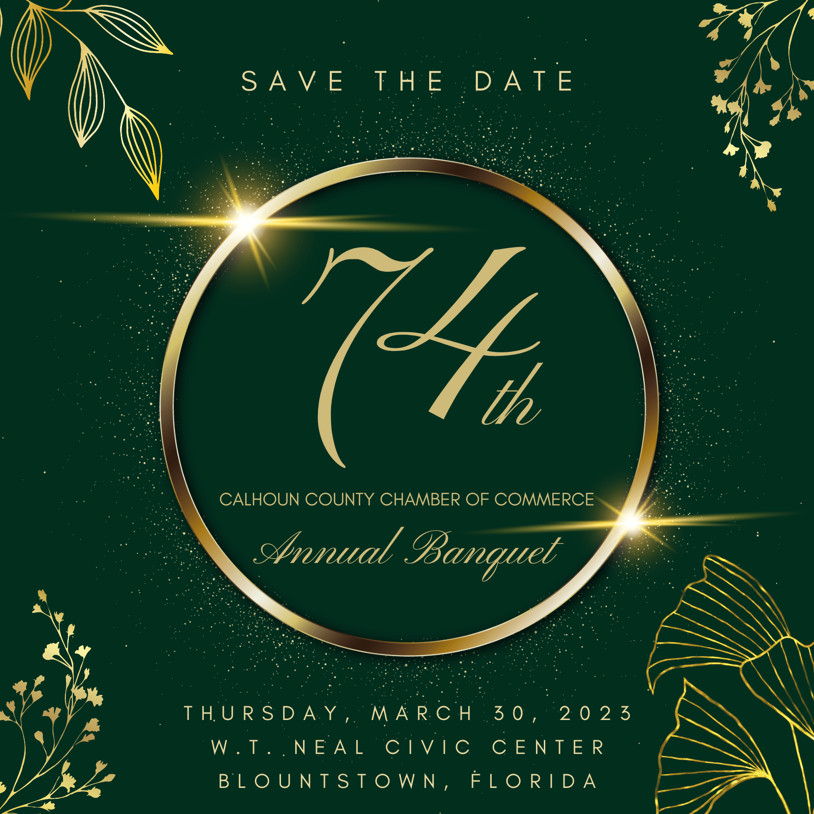 The 74th Annual Chamber of Commerce Banquet is set for Thursday, March 30, 2023 at the W.T. Neal Civic Center. There will be a reception from 5:30 to 6:15 p.m., with the program starting at 6:30 p.m.