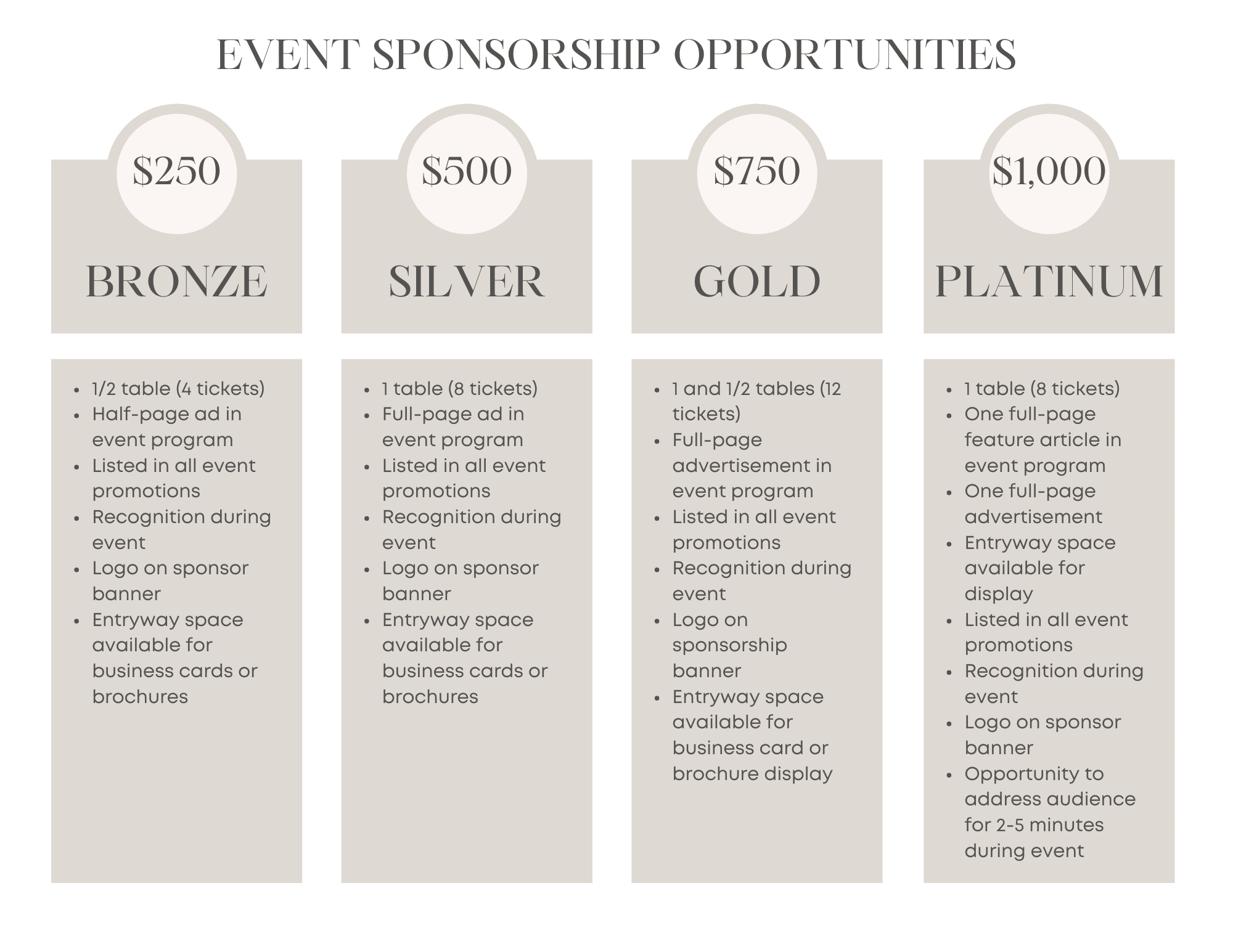 SPONSORSHIPS: Packages detailed in the image below.  This is a fantastic opportunity to showcase your business or organization to Chamber and community members!